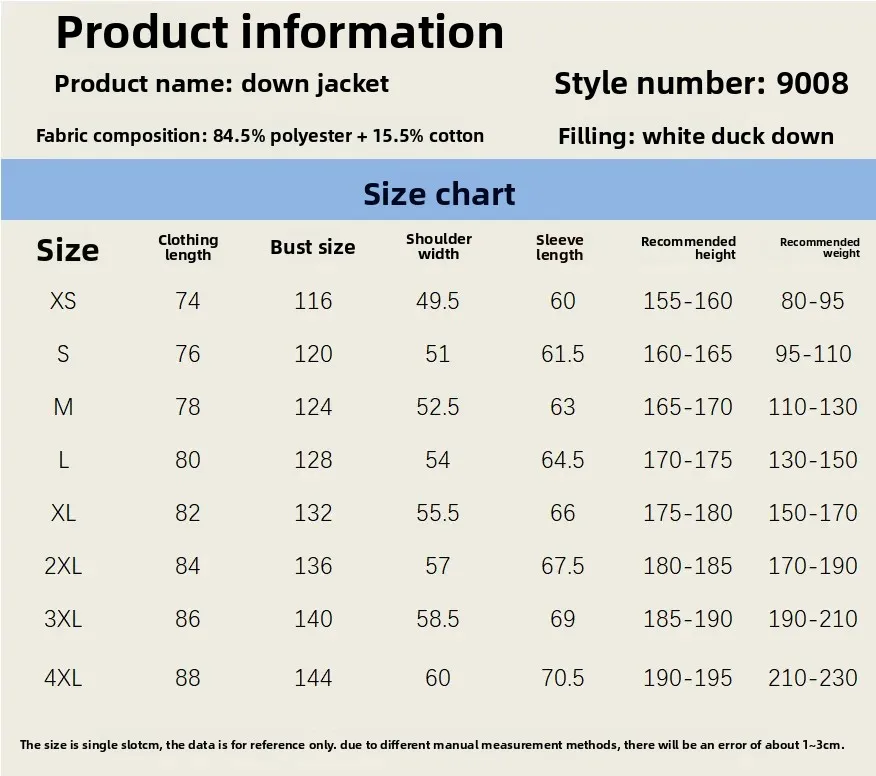 • Garnissage en duvet : Rembourrée avec un duvet de haute qualité, elle procure une chaleur exceptionnelle — le choix idéal pour affronter l’hiver avec confort et style.